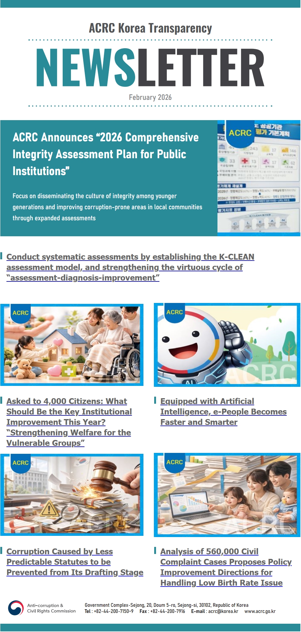 Se adjunta el ACRC Korea Transparency Newsletter (Febrero 2026) para su amable referencia. Agradeceremos mucho su interés y atención al contenido.
